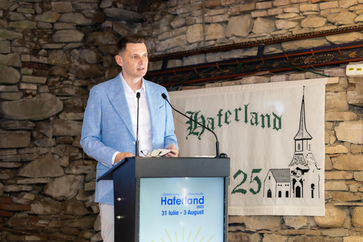„Dacă vorbim despre vecinătăți ca temă majoră a acestei ediții a Săptămânii Haferland, trebuie să vorbim despre vecinătățile extinse, care ne leagă nu doar de cei de alături, ci și de cei care nu mai sunt aici, ca sașii plecați din România. Ne rămâne nouă, așadar, generațiilor unei Europe fără granițe, sarcina de a construi – și de a reface, acolo unde este cazul – punțile dintre aceste comunități, inclusiv prin inițiative ca Săptămâna Haferland, această operațiune de redescoperire a trecutului care cu un ochi privește spre viitor”, a declarat Emil Hurezeanu, fost ministru al Afacerilor Externe, fost ambasador în Germania și Austria și co-inițiator al evenimentului.