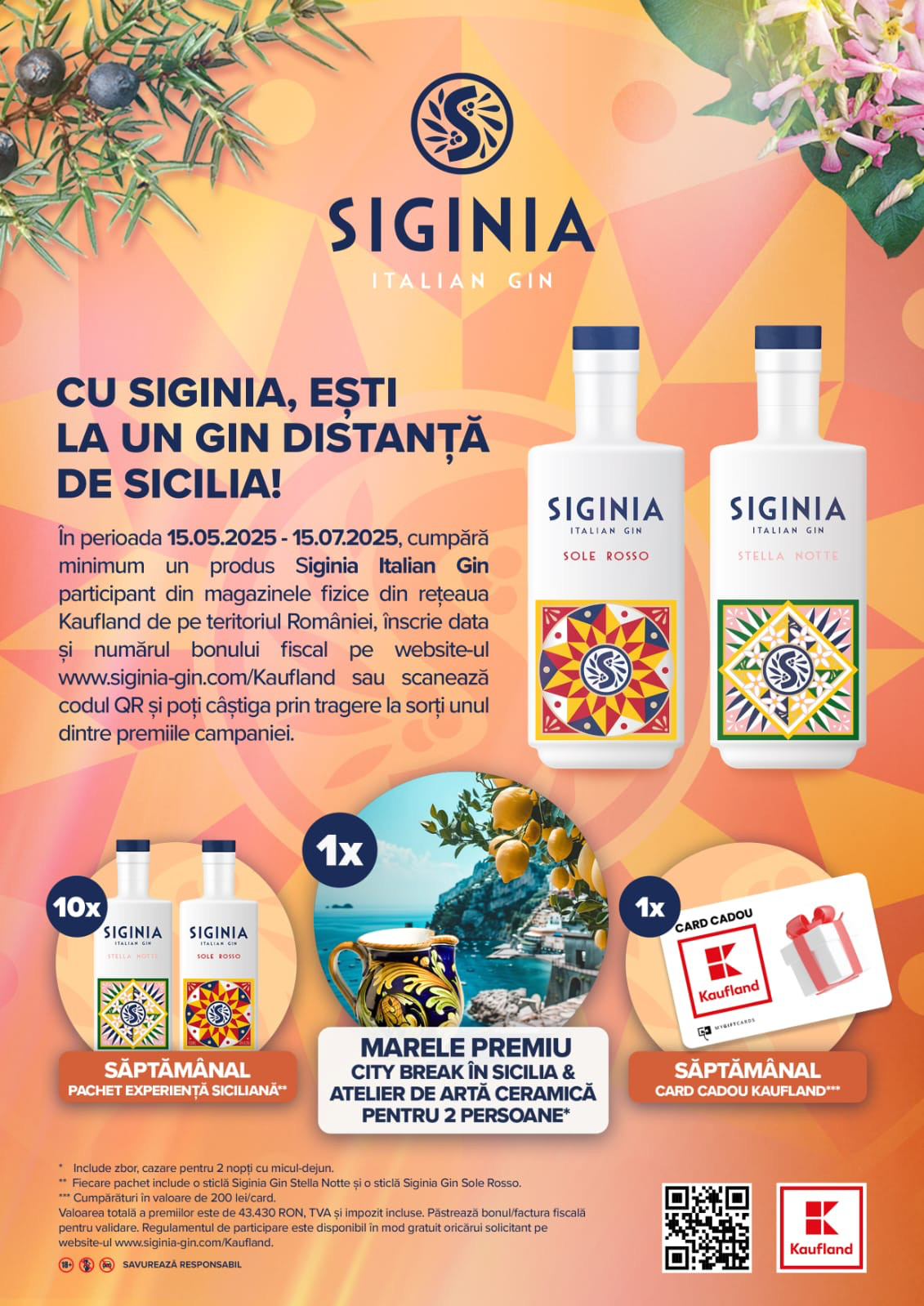 Campania a avut ca obiectiv conectarea consumatorilor cu spiritul verii italiene printr-un mecanism simplu, dar memorabil. Cei care au achiziționat cel puțin un produs Siginia participant din magazinele fizice Kaufland și s-au înscris pe siginia-gin.com/Kaufland sau prin scanarea codului QR, au intrat automat în tragerea la sorți pentru unul dintre cele 100 de premii oferite.