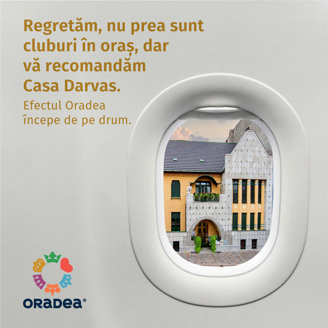 Am stilizat hublourile ca ferestre spre cele mai frumoase locuri din Oradea: fațade art nouveau, piețe elegante, poduri peste Criș și spații unde cafelele durează două ore și jumătate – exact cât ai nevoie să-ți încarci bateriile și telefonul. Am ales acest element vizual pentru că, într-un zbor scurt și fără escală, nu vrei doar viteză. Vrei și anticipare. Vrei ca destinația să-ți zâmbească înainte să atingi solul. Am completat vizualul cu headline-uri contextuale și autoironice, pentru că știm că turiștii de city break vor două lucruri: să se amuze și să știe la ce să se aștepte. Vocea campaniei e una care te face să zâmbești și să-ți dai seama că da, în România încă mai sunt locuri care surprind și o fac fără pretenții.