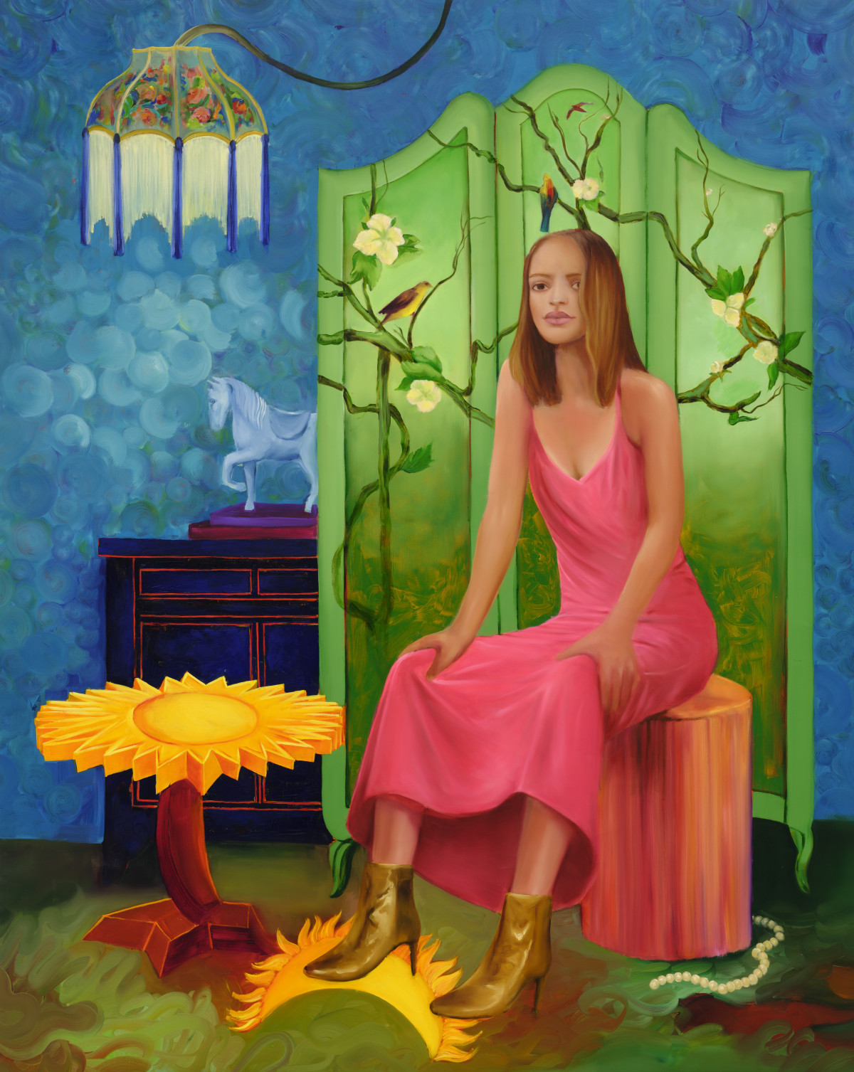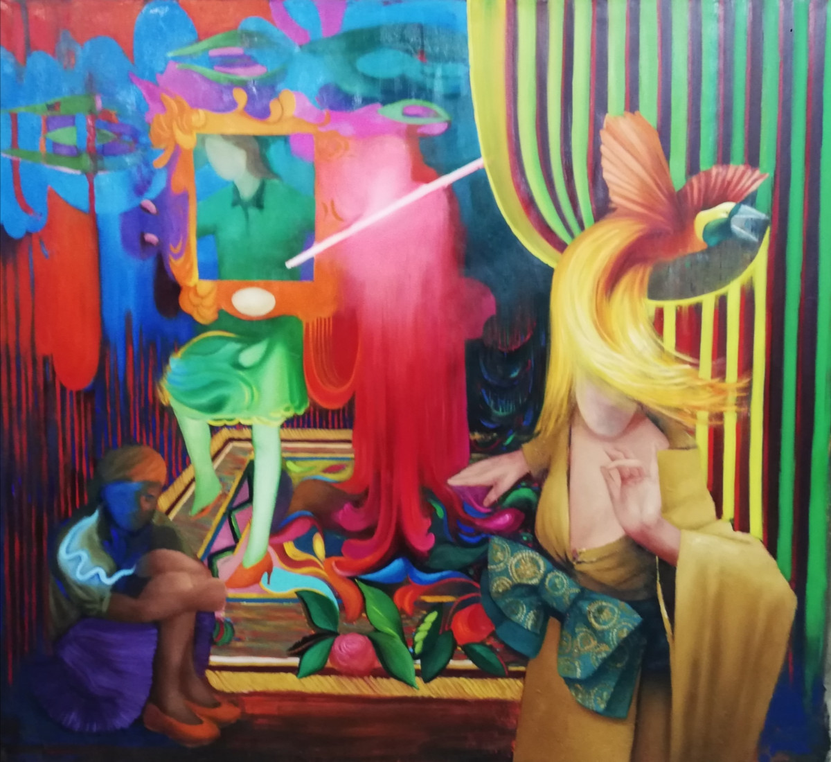 “La tiganci”,2016, ulei pe panza– combinație de expresionism și elemente decorative inspirate din modă; un moment de amestec între corp, estetică și psihic.