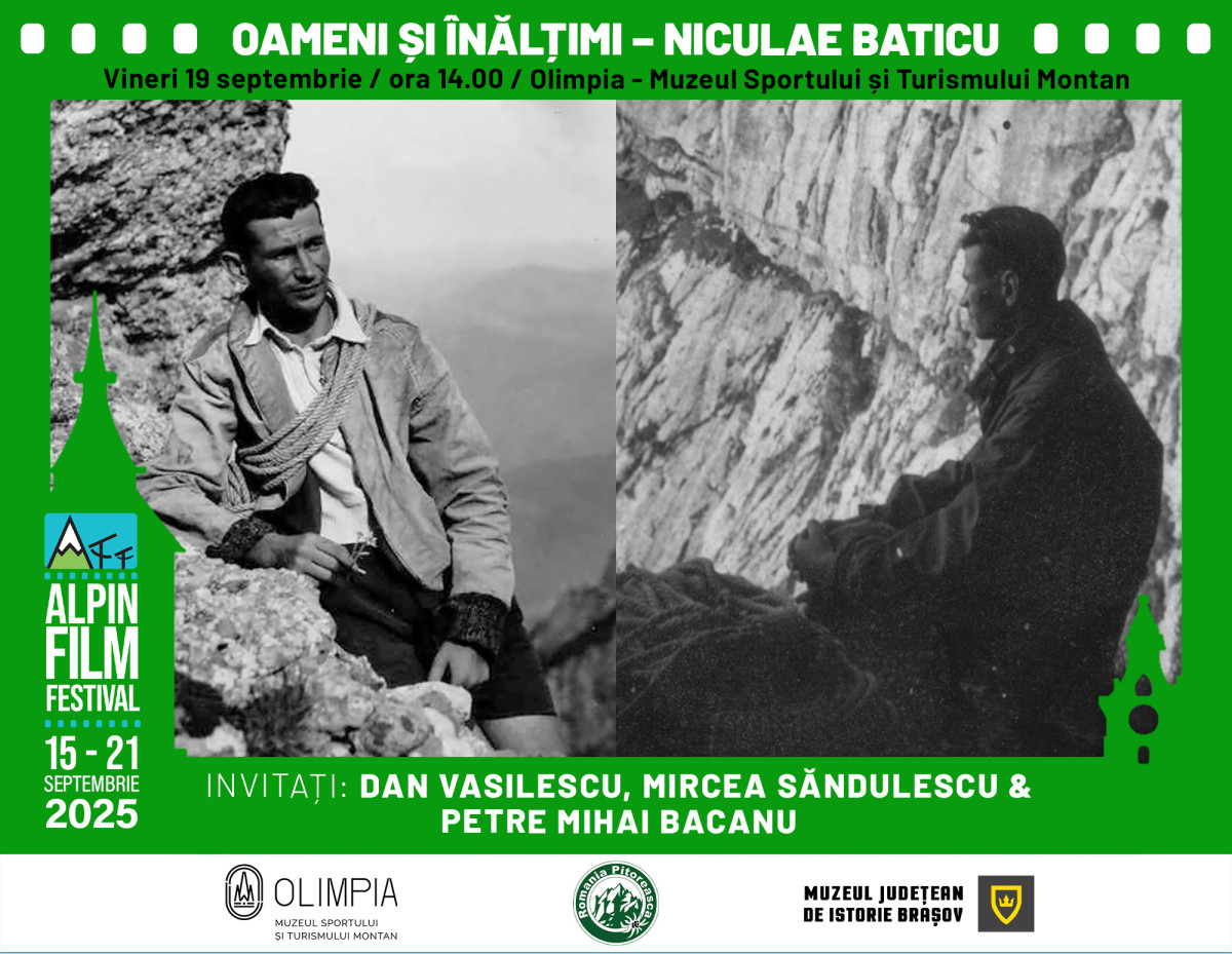 7. Legătura cu natura, prin film, carte și fotografie – experiențe care inspiră un stil de viață activ și responsabil și care aduc în prim-plan subiecte de actualitate din lumea munților, cum ar fi profilul unor personaje celebre (Conferința Oameni și Înălțimi - Niculae Baticu, vineri, 19 septembrie, ora 13:30 la Olimpia, Muzeul Sportului și Turismului Montan) sau Urșii (Conferința Urșii - Probleme și soluții, duminică, 21 septembrie, ora 12:00).