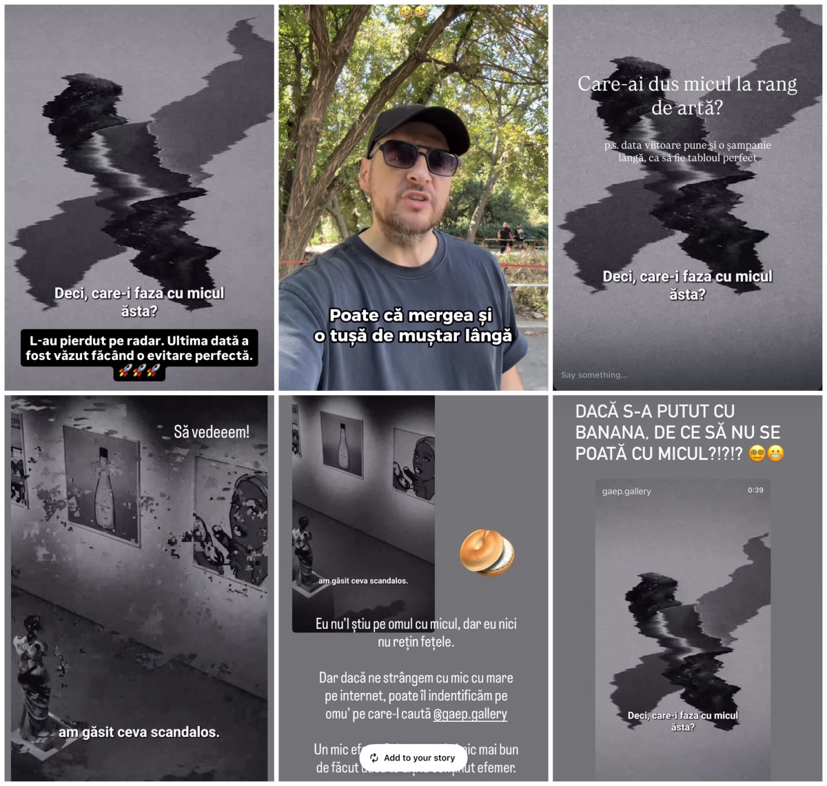 Macanache, rapper și poet urban, semnează o intervenție artistică neconvențională, ce explorează zona artei contemporane printr-un gest inedit: „Micul de pe perete”. Aceasta constă într-un mic lipit cu bandă adezivă, însoțit de urme de muștar, expus temporar pe peretele galeriei Gaep, care a servit drept locație.