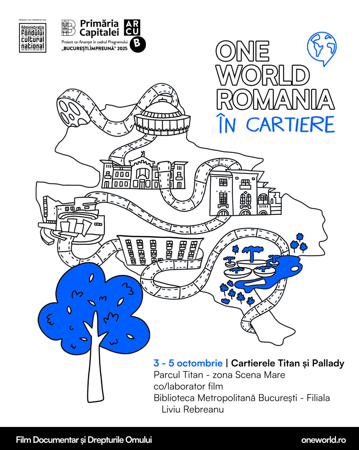 Evenimentele One World Romania în cartiere fac parte din Documentar comunitar: ateliere, dezbateri și proiecții de film documentar și drepturile omului în cartiere din București, proiect cultural co-finanțat de Administrația Fondului Cultural Național. Proiectul nu reprezintă în mod necesar poziția Administrației Fondului Cultural Național. AFCN nu este responsabilă de conținutul proiectului sau de modul în care rezultatele proiectului pot fi folosite. Acestea sunt în întregime responsabilitatea beneficiarului finanțării.