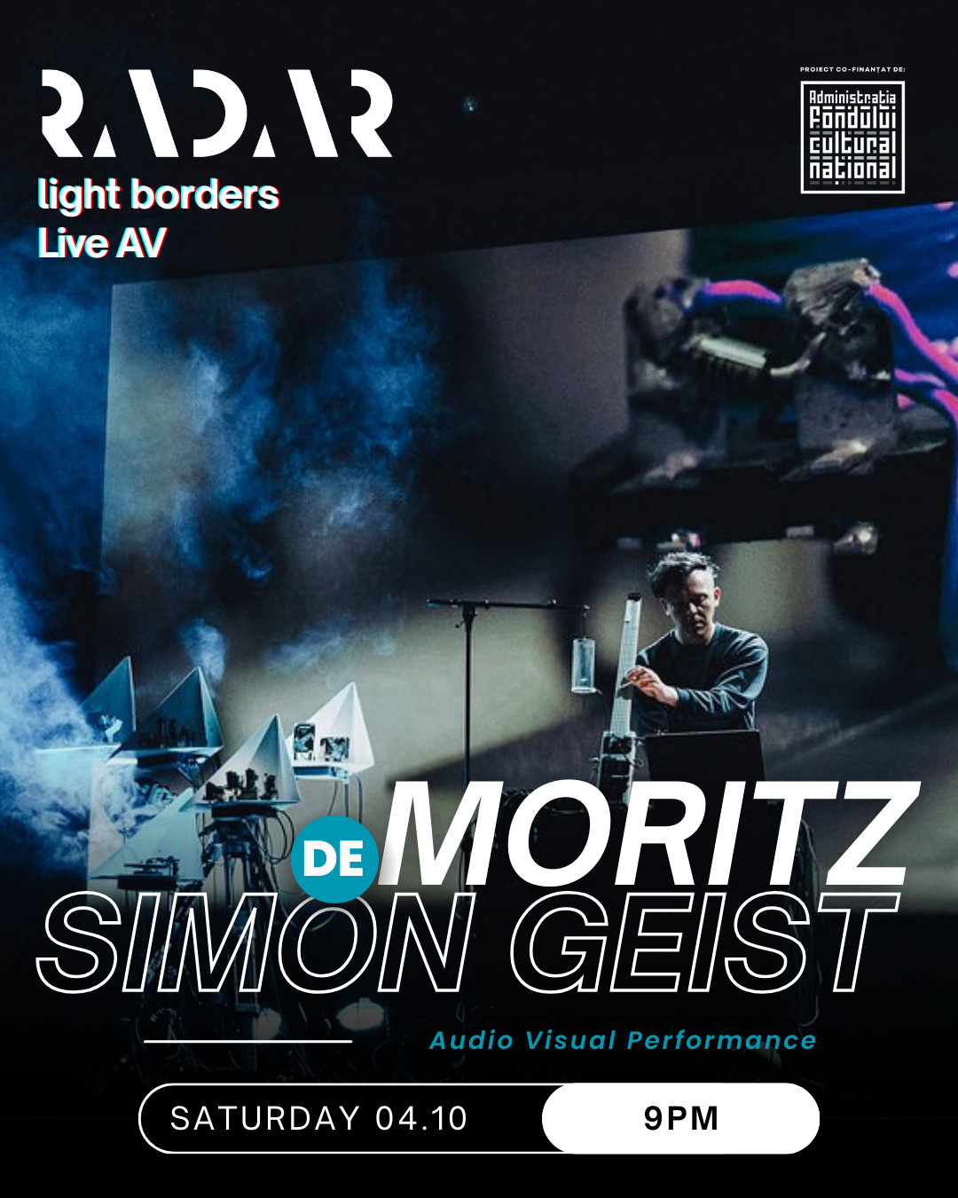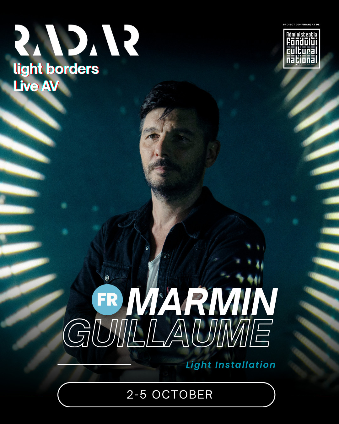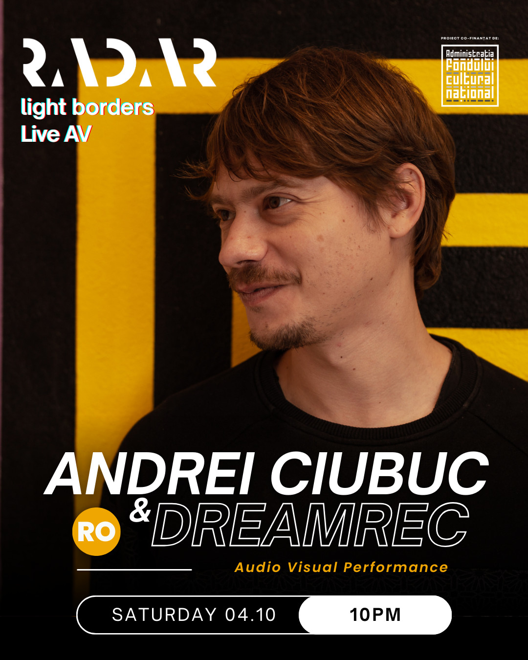 Scena Audio-Vizuală a festivalului RADAR, cu tema Light Borders, aduce în fața publicului unele dintre cele mai inovatoare performance-uri live de muzică electronică și artă vizuală. Această secțiune a festivalului completează programul general RADAR, eveniment în cadrul căruia expun artiști din 11 țări, confirmând poziția festivalului ca platformă internațională a noilor media și a experimentului artistic. Festivalul va avea loc în Sala de Marmură, Casa Presei Libere.
