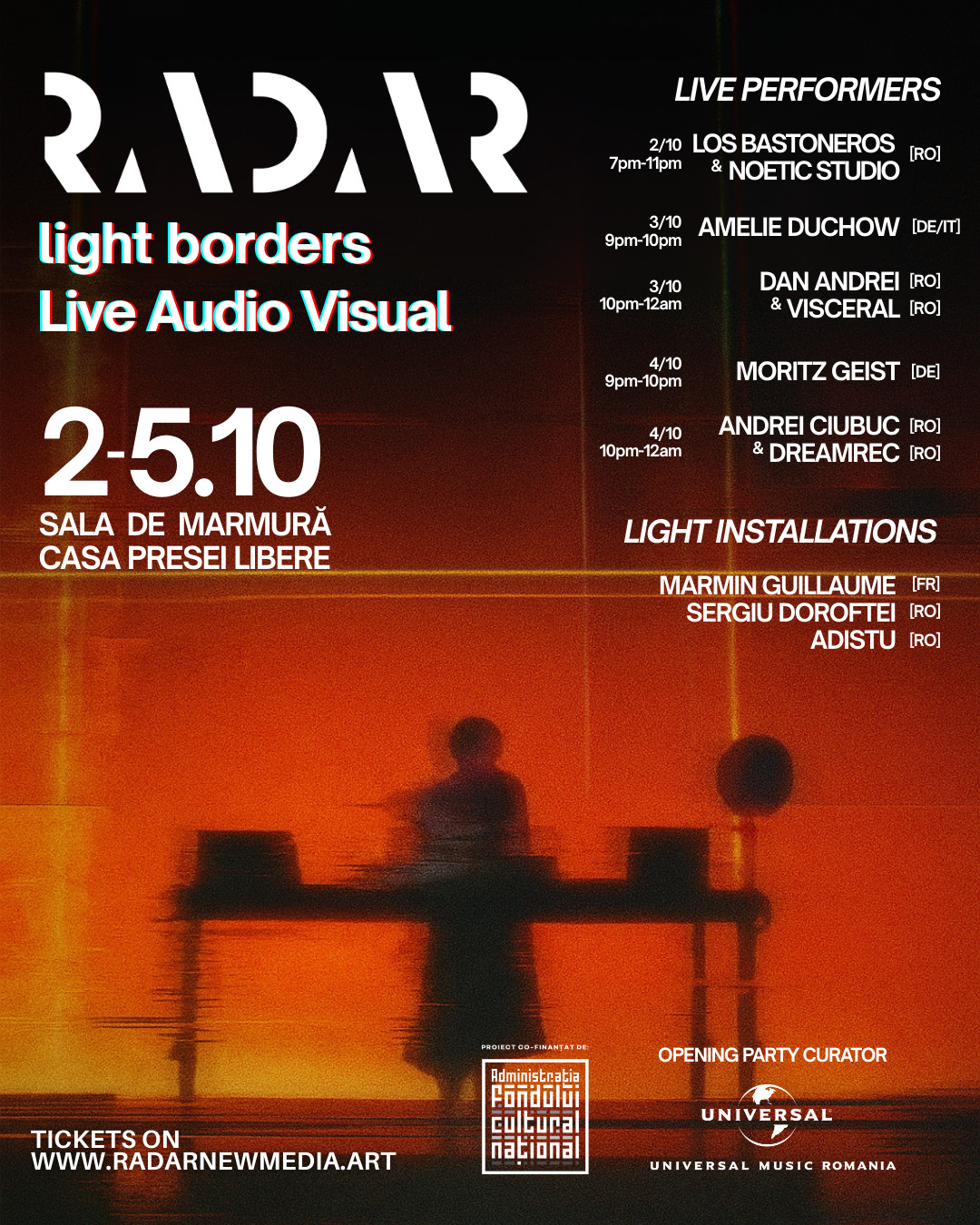 Biletele pentru RADAR 2025 sunt disponibile pe radarnewmedia.art. Accesul la performance-urile live sunt permise persoanelor +18.