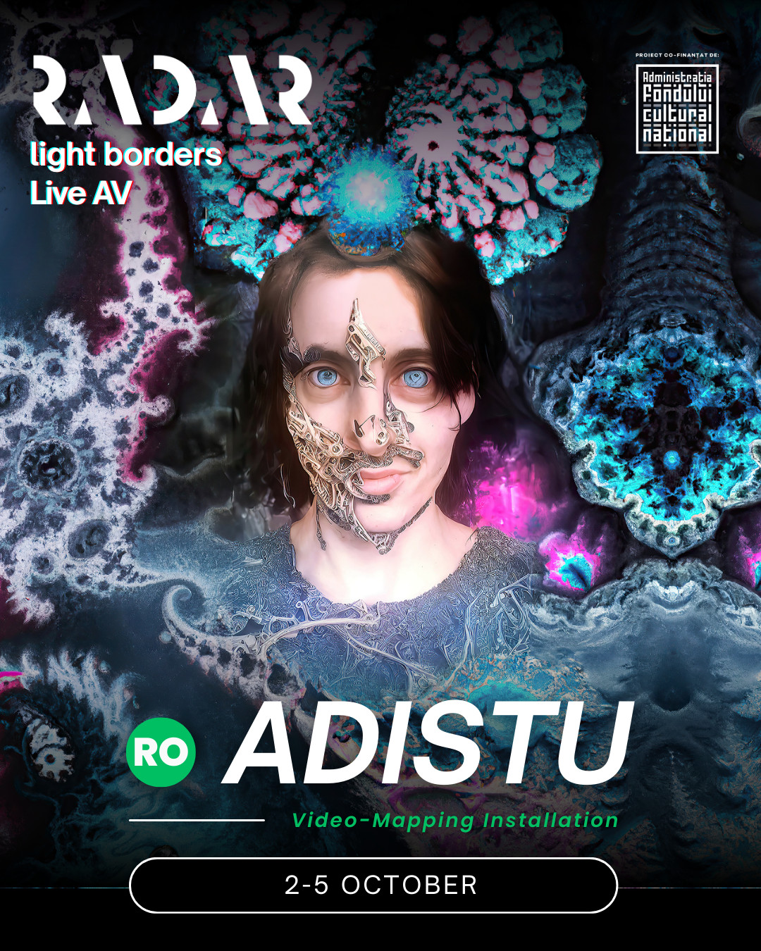 - Adistu (RO) – artist digital activ în peste 20 de țări, care creează universuri vizuale fractale, AI și 3D, cu un caracter ludic și suprarealist.