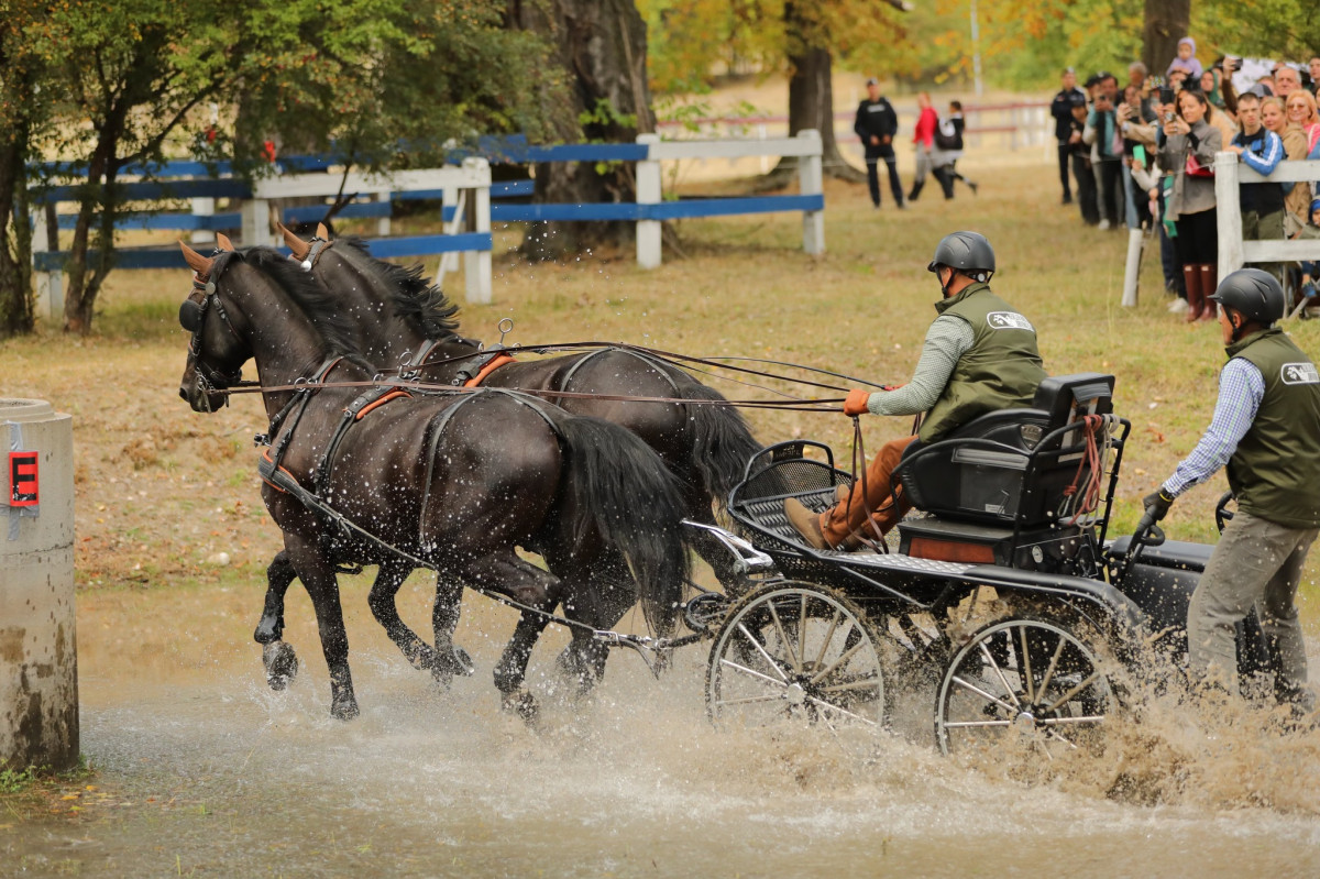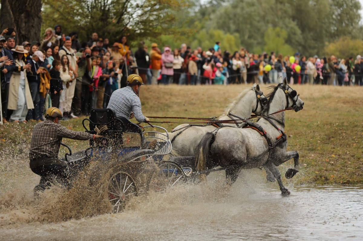 Un moment plin de adrenalină, sincronizare și forță a fost parada atelajelor, încununată de reprezentația atelajului cu șase cai, manevrat cu mare eleganță de campionul Eduard Bartha.
