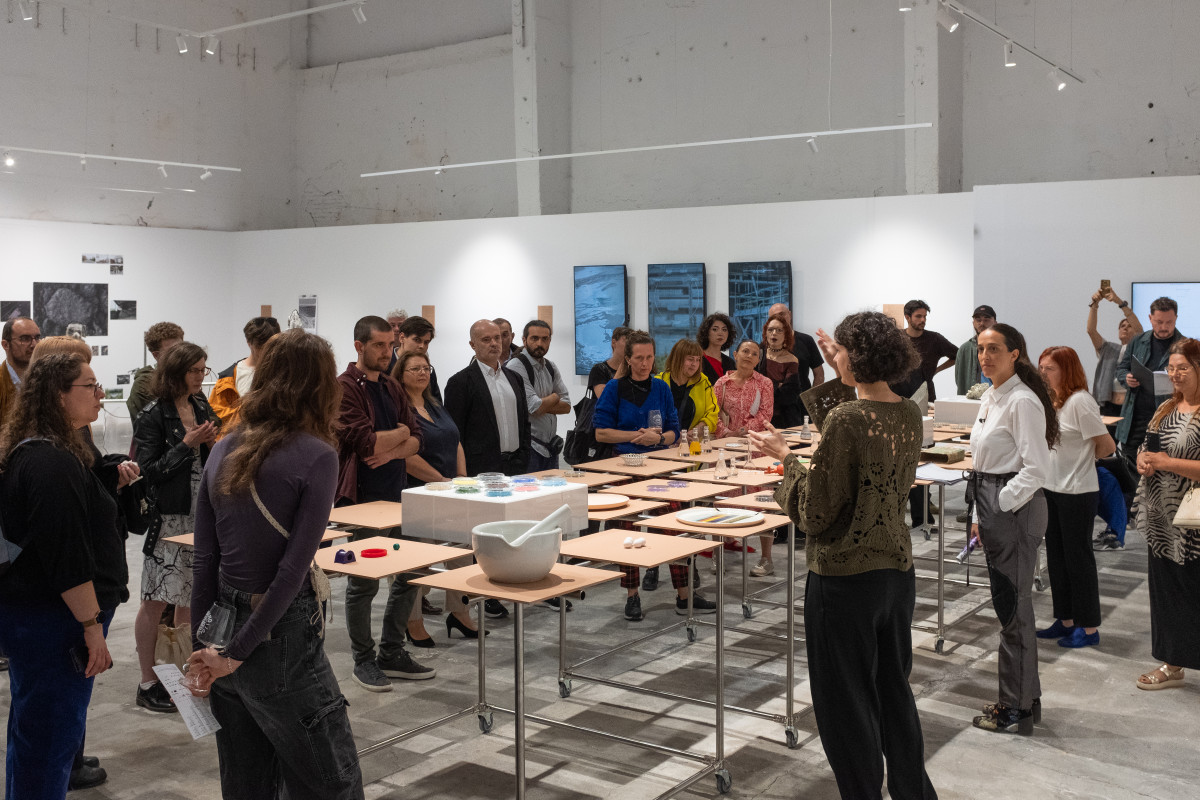 Designera Benedetta Pompili explorează potențialul unor materiale reziduale din procesul de zincare a oțelului și al concentratului de cupru produs de Cuprumin, de a deveni glazuri pentru piese ceramice - pe care le face apoi parte din piese de mobilier susținute din elemente de piatră recuperate și prelucrate cu ajutorul CMC Baia Mare.