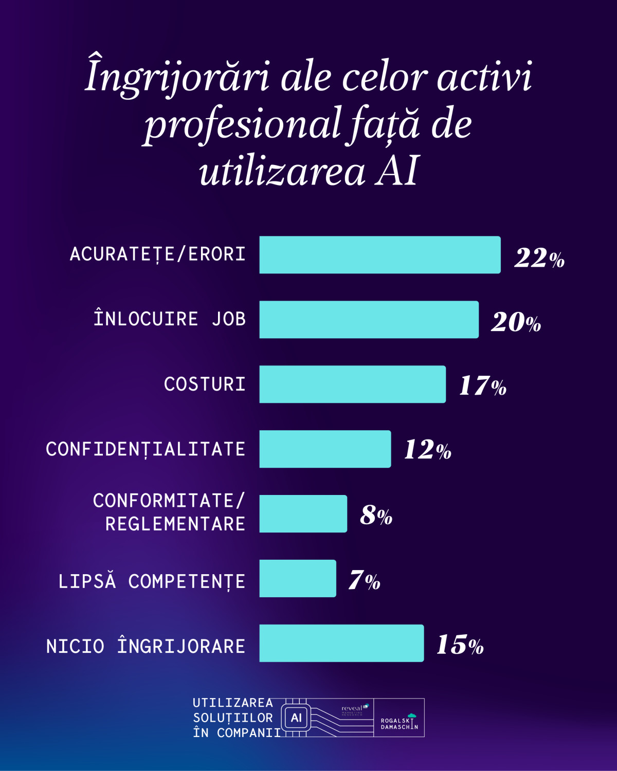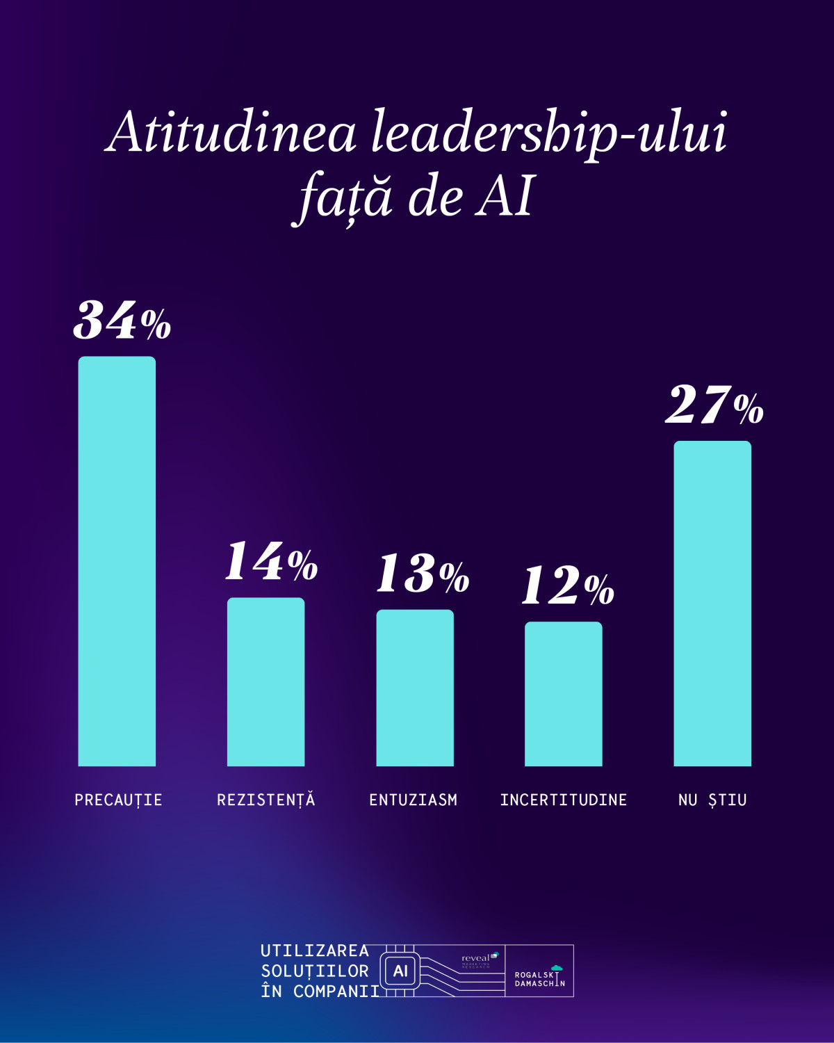 - 34% dintre liderii de business au o atitudine prudentă față de utilizarea AI;