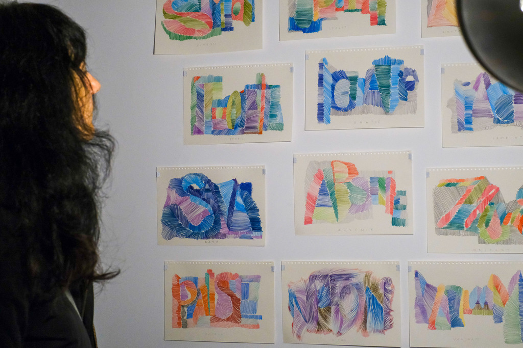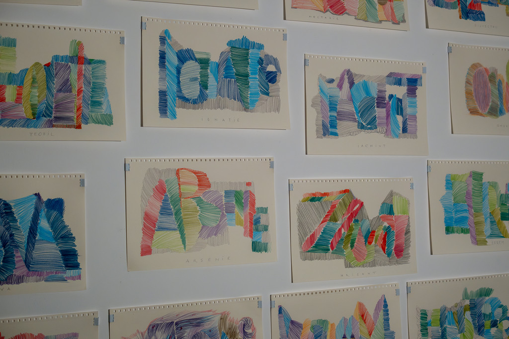 De aceea Camera 30 a Atelierelor Malmaison expune portrete grafice zugrăvite prin referire la nume de cult religios, cu ajutorul aceluiași limbaj de bază al scrierii și desenului aparent narativizate, dar de fapt transformate în declarații de atașament și embleme ale reculegerii. Pornind de la cuvinte, practica Silvia Trăistaru creează palimpseste vizuale care trădează și transcriu, ca prin forța unor efigii neintenționate, analogii suprapuse între experiențe sau imagini recognoscibile și invizibil.", Adriana Oprea.