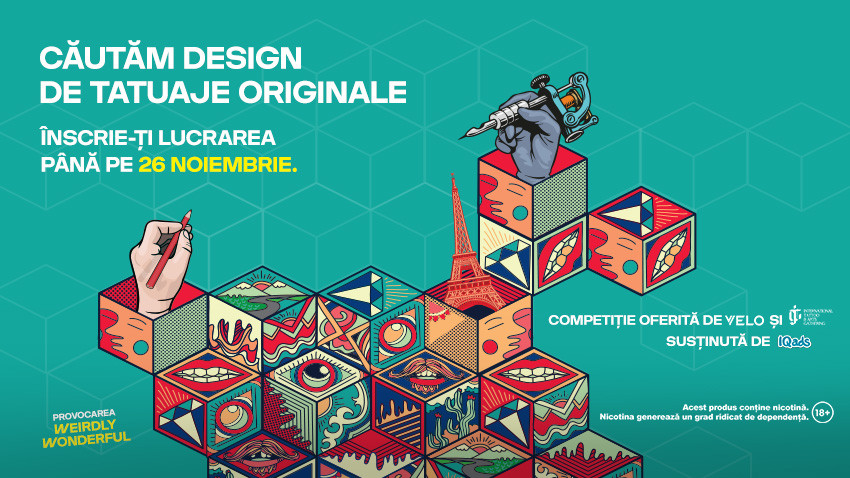Participă și tu la competiția creativă VELO a celor mai neobișnuit de frumoase tatuaje. Citește cu atenție brieful, creează un design de tatuaj Weirdly Wonderful și înscrie-te în concurs până pe 26 noiembrie.