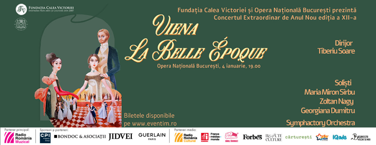 Vă aşteptăm să păşim împreună în noul an, să ne delectăm cu sonorităţile vieneze din La Belle Époque, să facem o călătorie muzicală în universul unor mari compozitori precum Johann Strauss fiul, Johannes Brahms, Giuseppe Verdi, Jacques Offenbach, Franz Lehár, Emmerich Kálmán şi Émile Waldteufel.