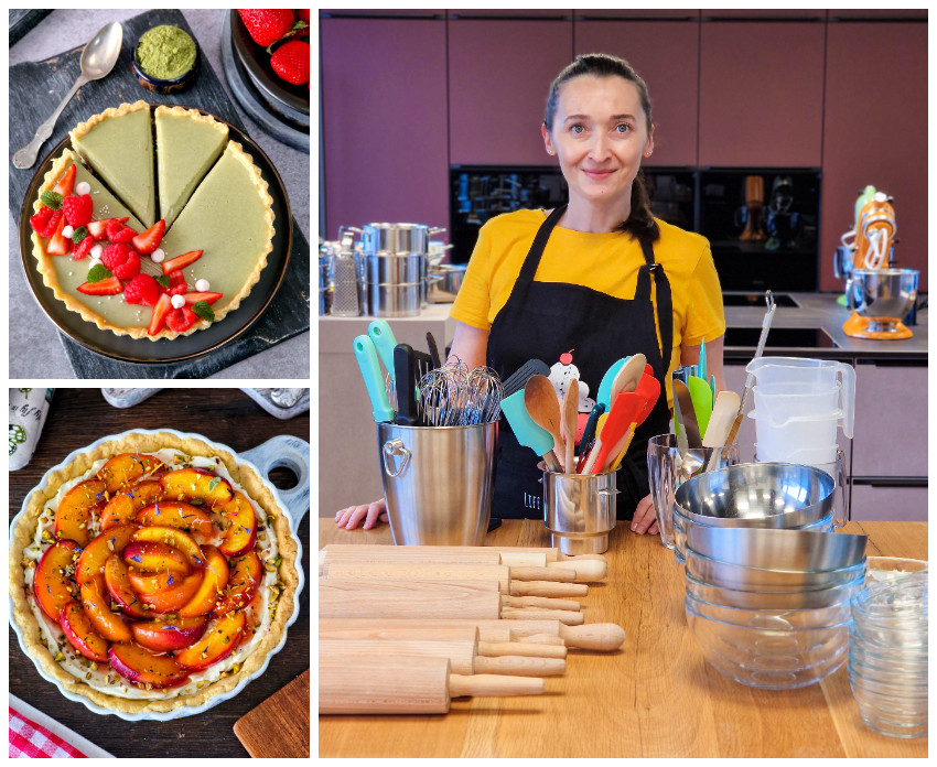 Cred că alegerea rețetelor vine din trei locuri diferite, în funcție de perioadă. Uneori pornesc de la poftă, foarte simplu. Mă trezesc într-o zi cu gândul la un desert cu fructe coapte sau la un blat cu unt și atunci știu exact încotro mă duc. Alteori pornesc de la tehnică, simt nevoia să repet ceva, să testez o anumită abordare, să văd dacă pot face un desert mai curat, mai echilibrat, mai potrivit pentru un atelier sau pentru cei care mă urmăresc. Iar în alte momente mă las ghidată de poveștile mici care se ascund în spatele ingredientelor. De exemplu, o prăjitură pe care o făcea mama, un gust din copilărie pe care l-am reinterpretat sau ceva ce am descoperit într-o carte cu rețete. Și, din fericire, am multe cărți din care să mă inspir. Timp pentru ele nu prea am.