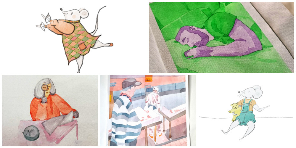 Buna. Ma numesc Liudmila si am 37 de ani. Sunt mamica full-time, am 3 copii minunati, si artista autodidacta part-time, mai ales noaptea. Atunci e liniste si pot sa ma concentrez. :) Sunt din Craiova, dar locuiesc in Bucuresti de la 18 ani si m-am integrat in peisajul capitalei. Am terminat Facultatea de Geografie, insa mi-am dorit sa invat graphic design. Asa ca m-am inscris la doua cursuri, de desen si pictura, respectiv de Photoshop si Corel, sa vad daca imi place si daca pot sa merg pe drumul acesta. Atunci m-am indragostit de tehnica picturii in acuarela si sunt hooked ever since. De aproximativ 12 ani.