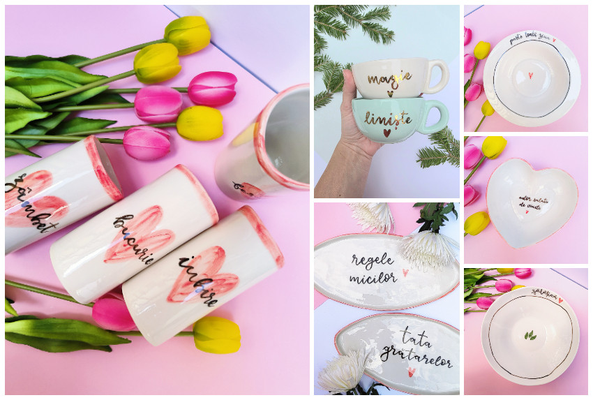 Cred că ceea ce diferențiază obiectele mele este întâlnirea dintre delicatețea porțelanului și mesajele scrise de mână. Lucrez cu nuanțe pastelate, accente de aur prin cuvinte pictate cu pensula, astfel încât fiecare obiect să poarte o mică emoție, nu doar o formă. Super-puterea lor este că sunt obiecte simple, dar personale - rămân funcționale, însă creează o legătură directă cu omul care le folosește.