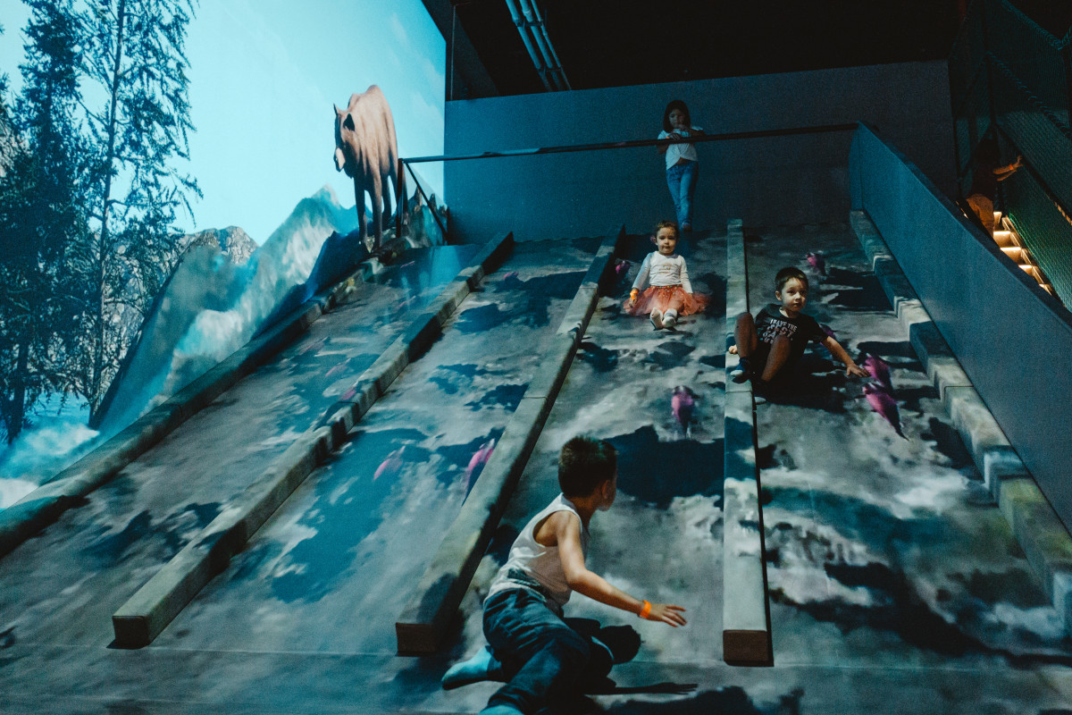 Zona dispune de o piscină cu bile de mari dimensiuni, dar și instalații care transformă joaca cu nisipul într-o experiență digitală fascinantă, pereții obișnuiți într-un spațiu de joacă interactive sau care le oferă copiilor o experiență unică de explorare dintr-un balon cu aer cald virtual.