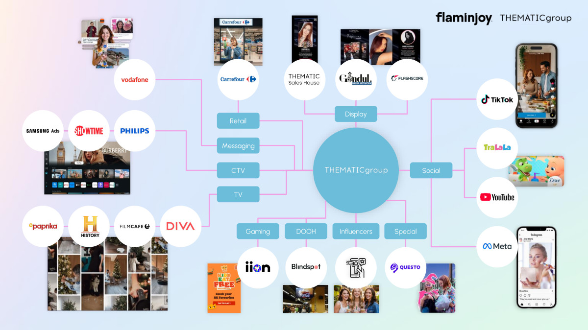 - Conținutul este livrat dinamic acolo unde performează cel mai bine in inventarul Thematic Digital: social, display, TV, OOH, retail media, platforme speciale