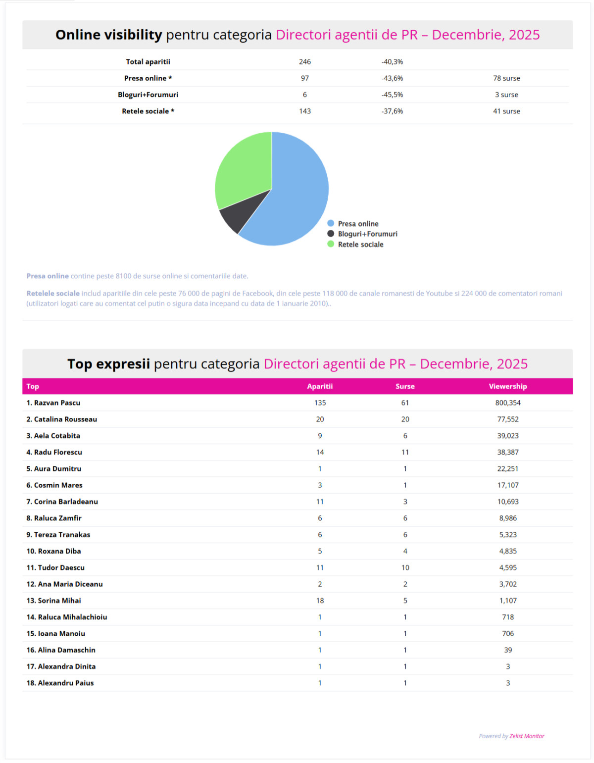 Topul este realizat pe baza datelor ZeList Monitor si fbMonitor, platforme de monitorizare si analiza ale companiei TreeWorks.