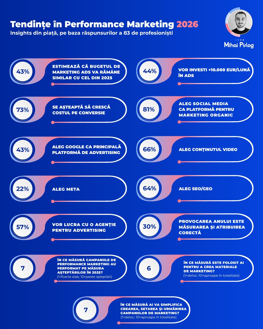 Și nu în ultimul rând aș vrea să văd că se mută focusul de la obsesia rezultatelor atribuite către o platformă sau alta, către un tip de marketing ancorat în P&L unde ne bazăm mult pe AI pentru research, parte de execuție, dar strategia rămâne responsabilitatea oamenilor pentru a construi un business sustenabil.