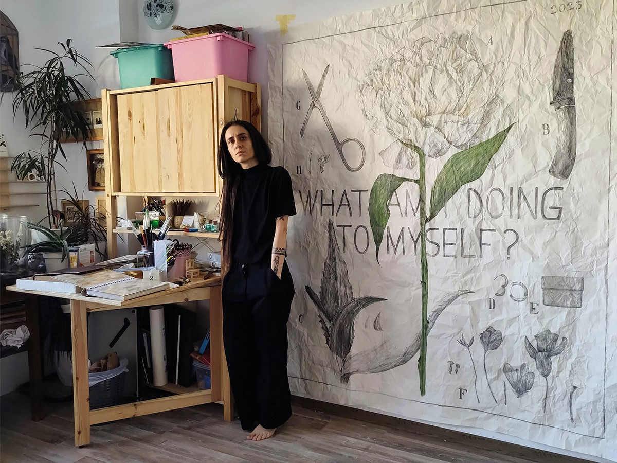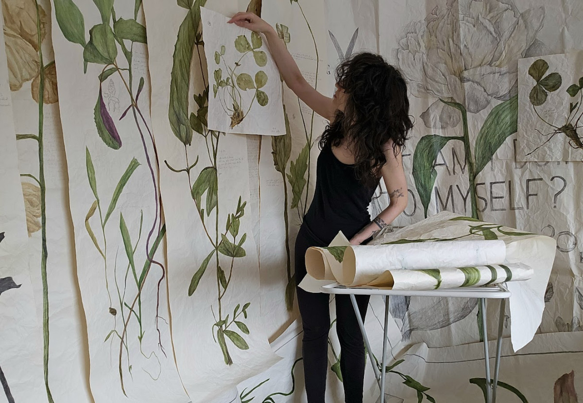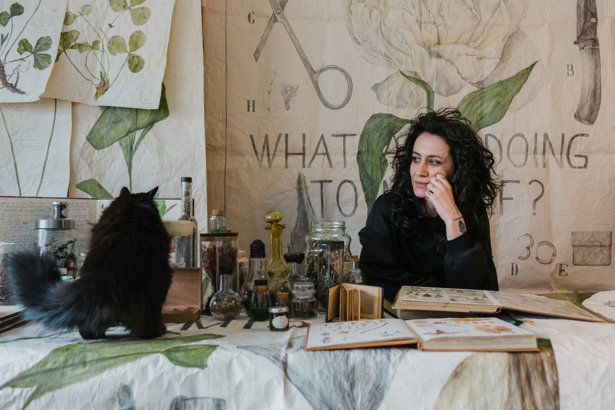 Îmi place să adun, să usuc și să presez plante de mici dimensiuni, care, mai apoi, devin subiecte pentru lucrări mari. Vreau să le fac vizibile, de neignorat. Actul ăsta are rădăcini în copilărie, când presam plante și făceam colaje la școală. Acum le folosesc pentru a compune un soi de (auto)portrete alegorice.