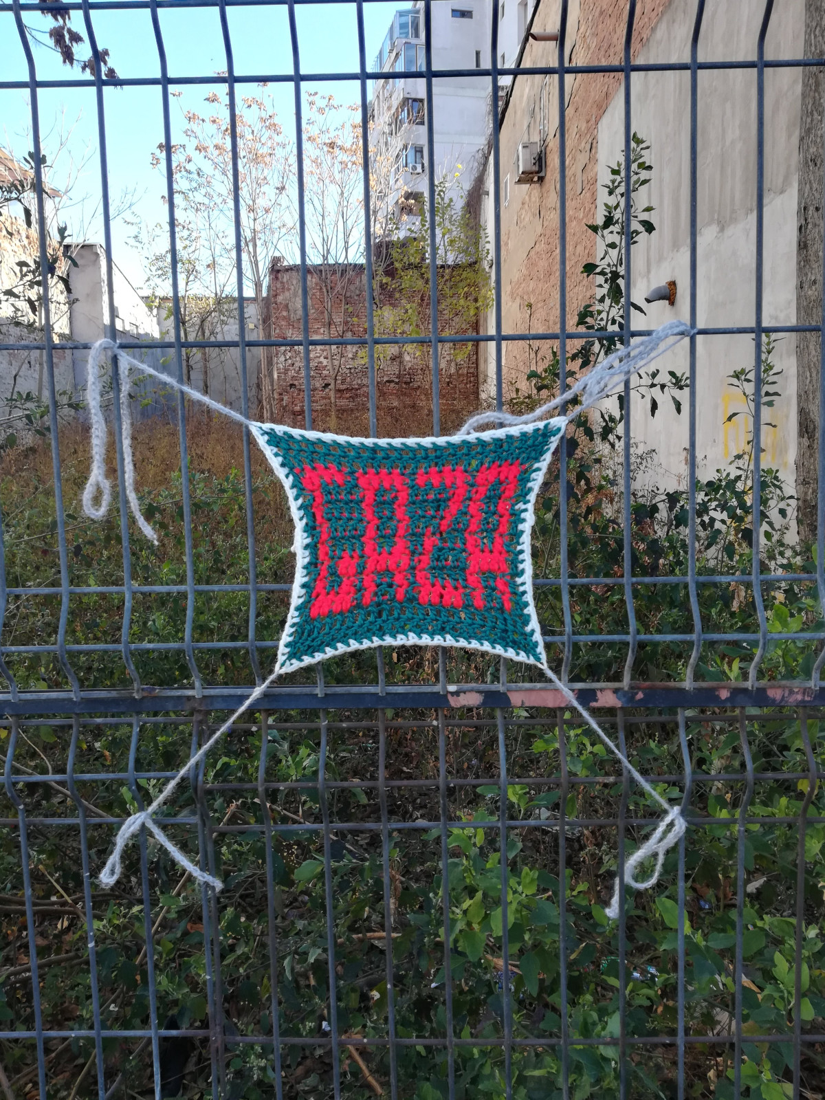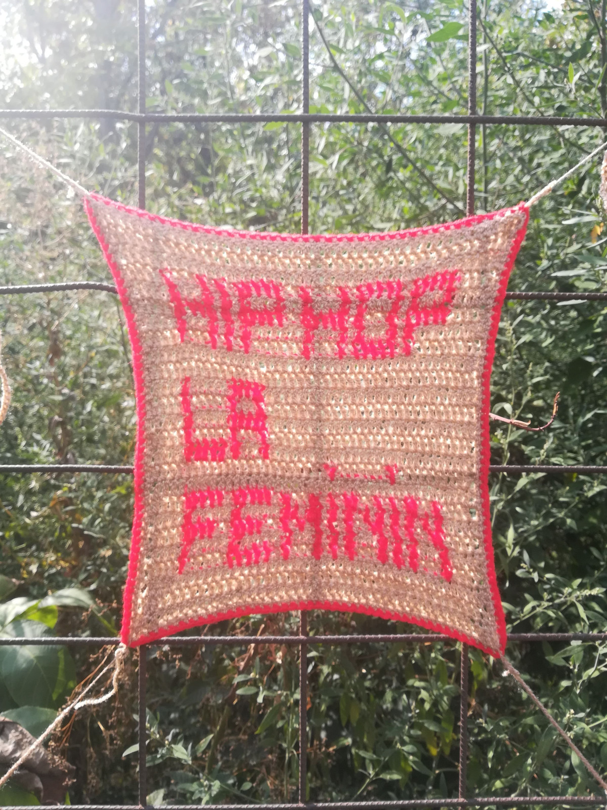 Mesajele mele croșetate au început ca niște experimente inițial, și au pornit fie din experiența mea personală (TE CRED, HIP HOP LA FEMININ), fie din interacțiunea cu orașul (I<3 BU(CUR)EȘTI, ATENȚIE CADET ENCUIALA! - această din urmă e gluma unui prieten, la care am râs mult și mi-a dat apoi permisiunea să o materializez textil) sau lumea din jur (GAZA).