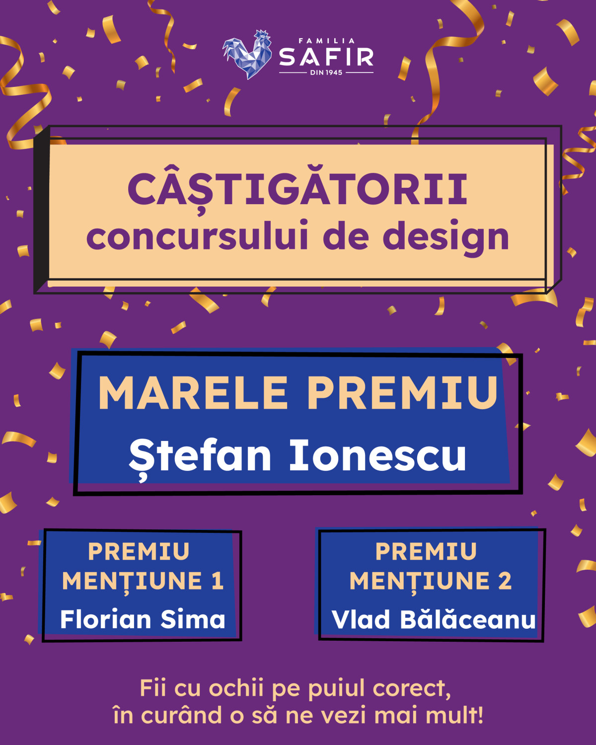 Rezultatul: un mare câștigător al premiului de 5.000 de euro, al cărui design va sta la baza reconfigurării prezenței la raft a brandului, și doi câștigători ai mențiunilor, în valoare de 1.000 de euro fiecare, premiați pentru viziune și pentru direcțiile vizuale propuse.