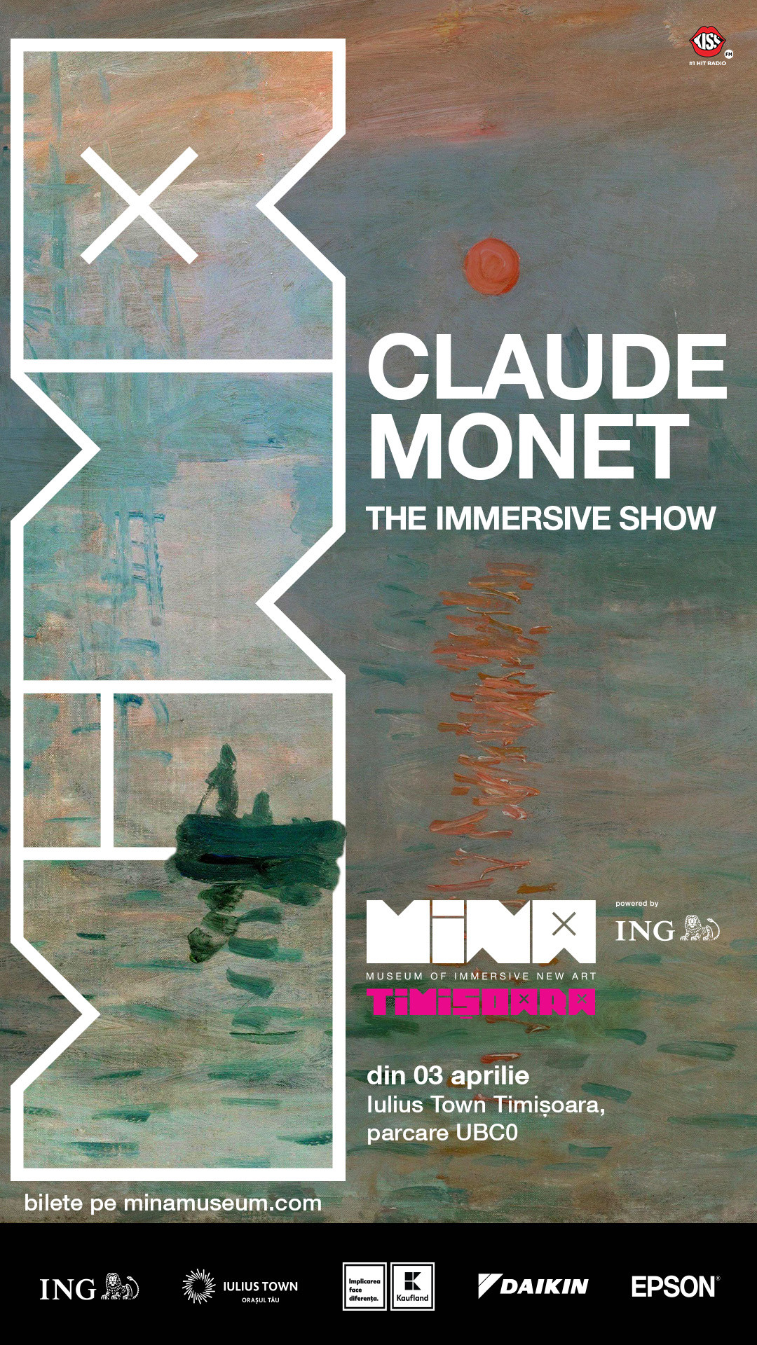 Monet: The Immersive Show – o incursiune în universul impresionist al lui Claude Monet, cu peste 160 de lucrări prezentate într-un format imersiv structurat în 11 capitole tematice, de la „Impresie, Răsărit de soare” la celebra serie „Nymphéas”.