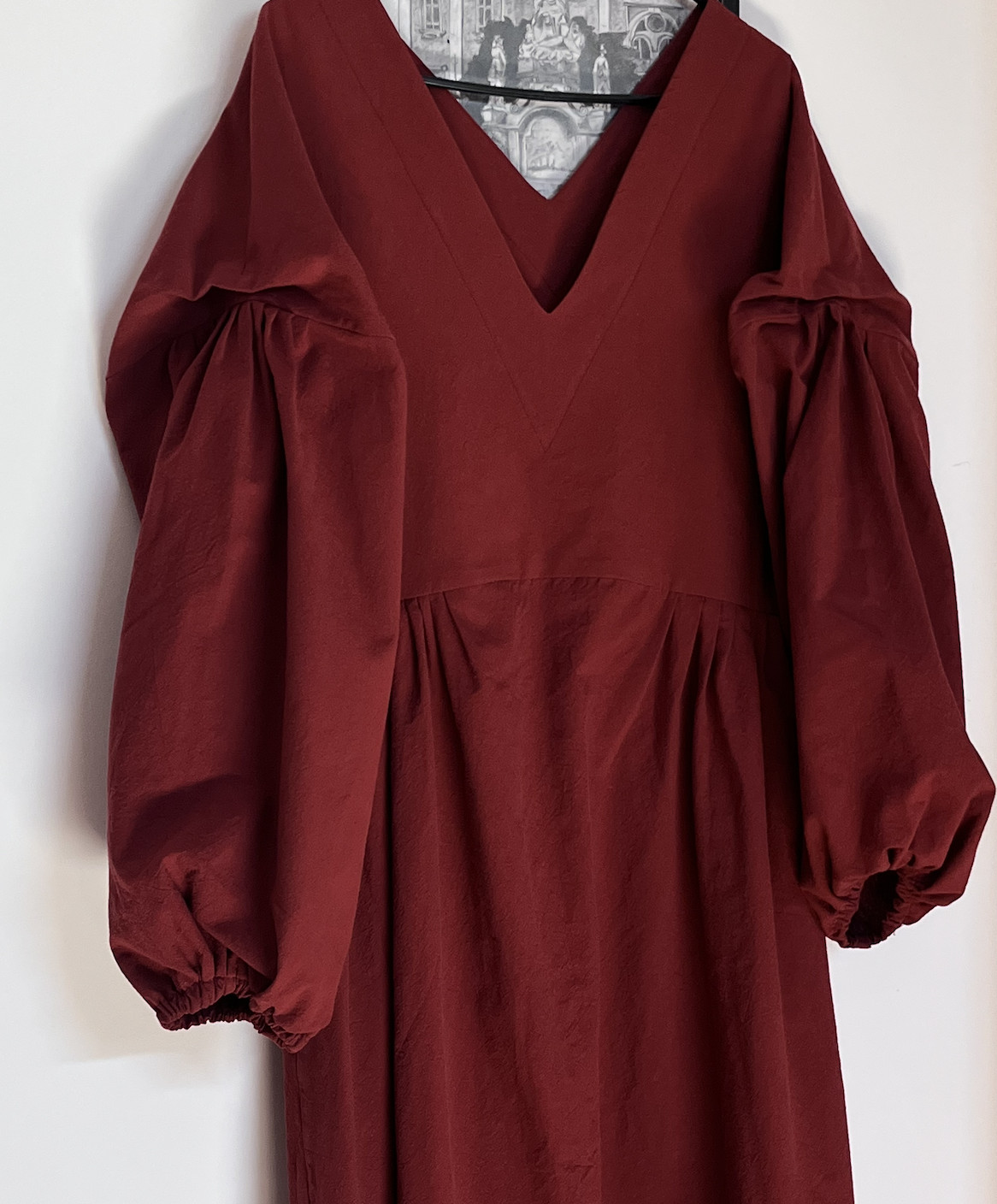 Am externalizat partea de cusut 100% - eu mai croiesc din când în când sau fac pompoane, din materiale rămase sau ajut croitoreasa și fac eu munca măruntă (pun nasturii). Și partea de croi este externalizată în proporție de 95%. În rest iterez, desenez, caut materiale, intermediez și creez noi parteneriate și aplic pentru expoziții.