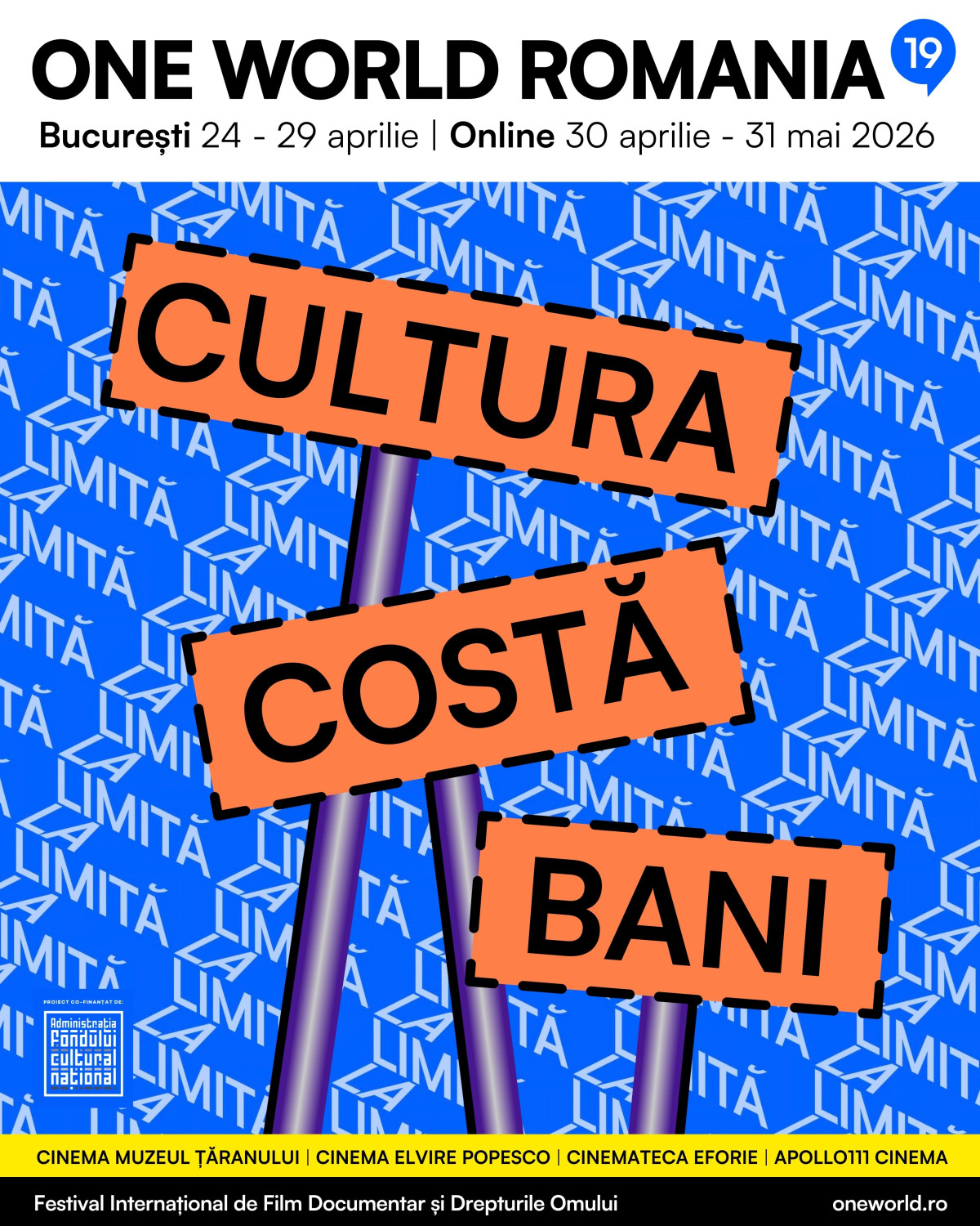 Abonamentele Early Bird pentru cea de-a nouăsprezecea ediție a Festivalului Internațional de Film Documentar și Drepturile Omului One World Romania sunt disponibile până pe 1 aprilie pe platforma Eventbook. Mai multe detalii și programul complet vor fi anunțate în curând.