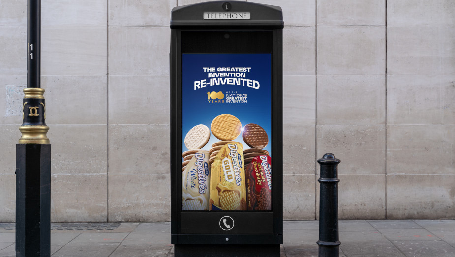 Numele reclamei: McVitie's Chocolate Digestives 100 Years OOH Banner