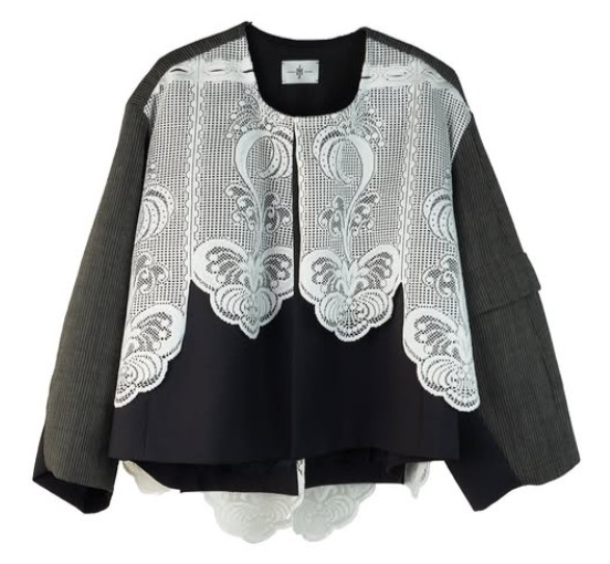 O piesa care aș purta oricând sunt gecile care le fac de un an doar. Sunt fel și fel de combinații de sacouri vechi de lână și dantele, unele chiar dantele, altele luate din perdele sau fețe de masă vechi, unele cu povești cunoscute, altele din SH-uri cu povești necunoscute. Piesele astea mă încânta așa mult pentru că sunt extraordinar de versatile, au lungimea tăiată cât până sub talie care îți oferă un sentiment de siguranță (daca ești femeie înțelegi la ce mă refer), șnururile care curg lungi din față pot fi folosite în multe moduri ca să încheie sau nu geaca. Tiparul mânecilor e luat de la o geaca făcută de mine acum 10 ani care era un bomber jacket, și toate astea sunt tăiate din bucăți de sacouri de lână cărora le-am păstrat buzunarele și detaliile nasturillor de la mânecile originale. Peste toate astea mai vine o vestă foarte versatilă și asta cu atâtea snururi încât poți să o legi și să o combini în nenumărate feluri. O port oricând, pentru a merge la o nuntă, sau în parc cu fetele sau la concerte, oriunde.