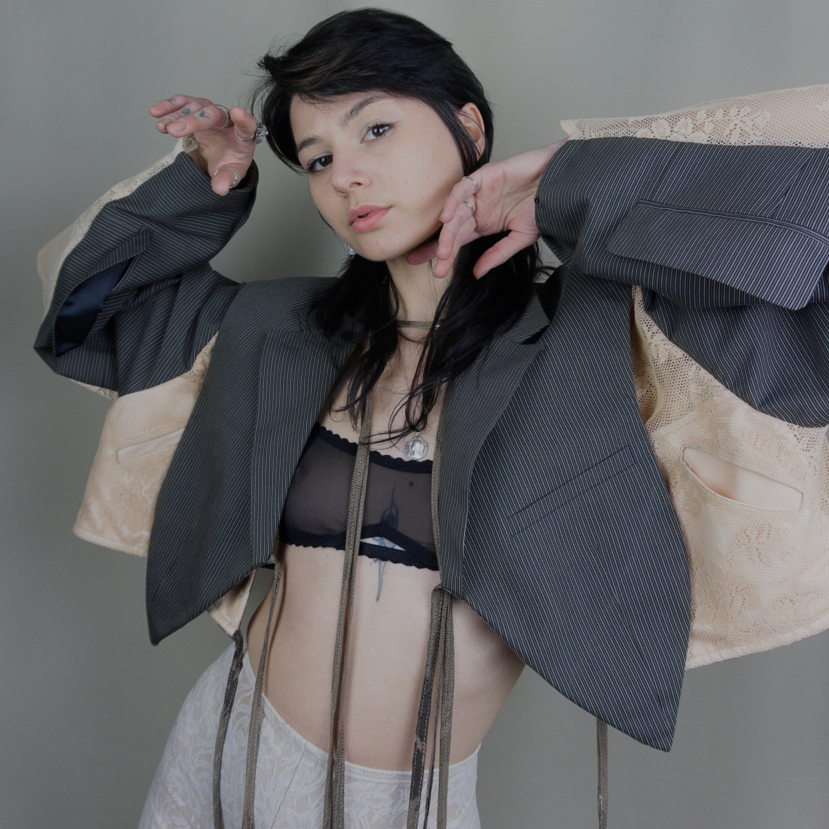 Maria Jovrea este una dintre vocile emergente interesante ale designului românesc, este sensibilă, curajoasă și conectată la teme actuale precum reciclarea, identitatea și feminitatea contemporană. Pentru ea, sustenabilitatea nu este trend, ci însăși structura brandului său și o parte esențială a procesului creativ: valorifică materiale vintage pentru calitatea lor superioară, reutilizează inclusiv detalii precum căptușelile sacourilor vechi, transformă resturile textile în obiecte noi și mizează pe piese unicat, construite în opoziție cu producția de serie.