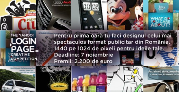 Detalii: Acum poti crea pe cel mai spectaculos format publicitar de pe web: pagina de Login a Yahoo!. Lucrarea ta poate fi branduita sau nebranduita, statica sau interactiva. Panza pe care o vei umple o gasesti pe login.yahoo.com.