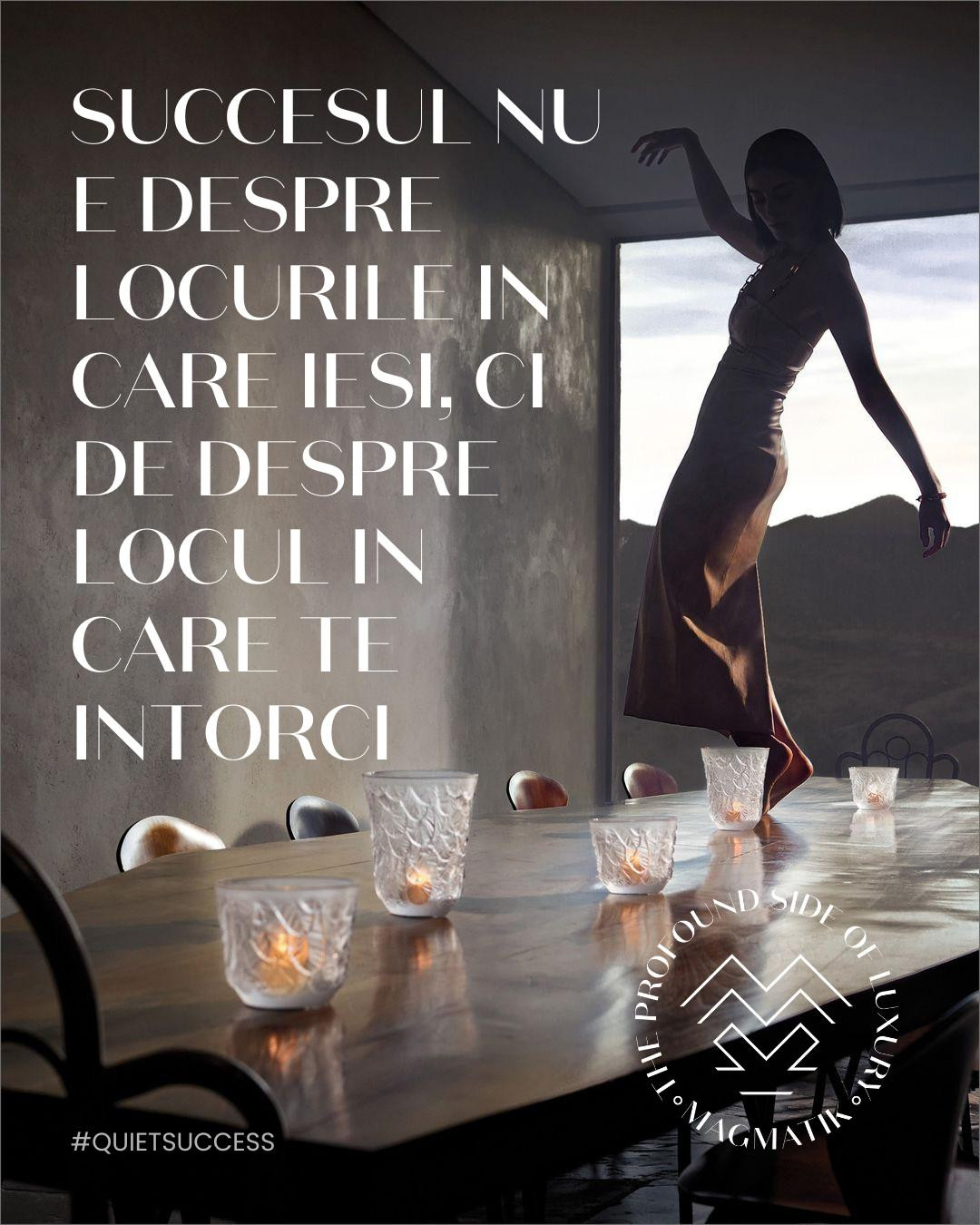 Campania Quiet Success duce mai departe pozitionarea brandului “The profound side of luxury” si mizeaza pe tensiunea dintre obiectele care pot fi cumparate din concept store-ul Magmatik si modul in care brandul isi inspira clientii sa traiasca in armonie cu valorile lor.