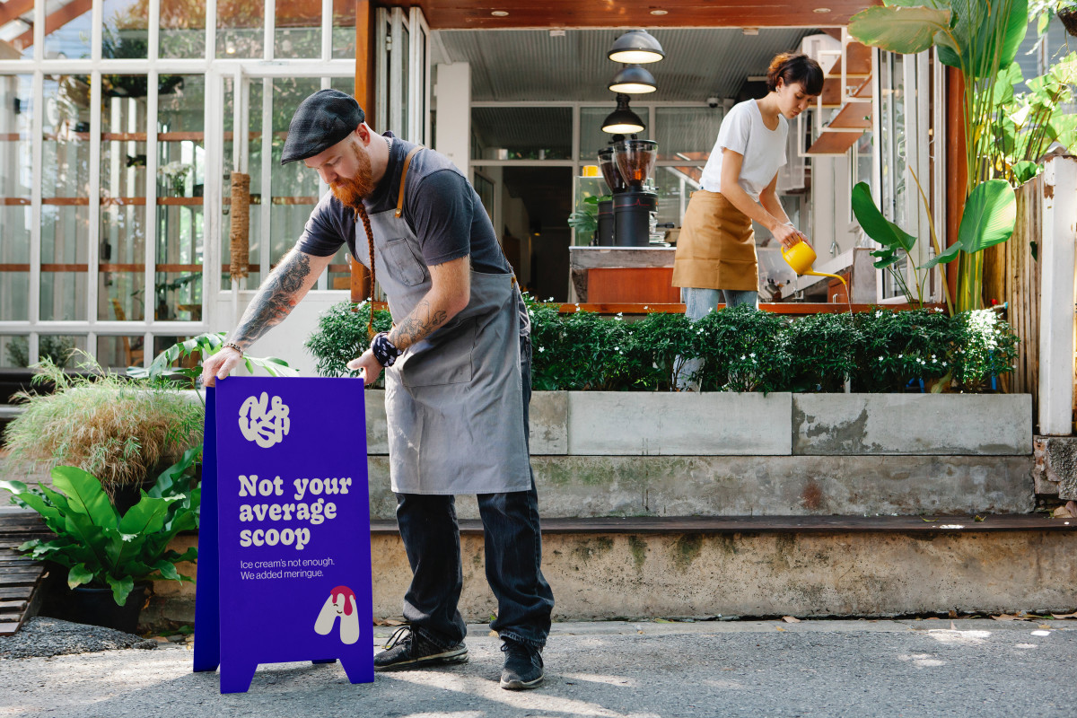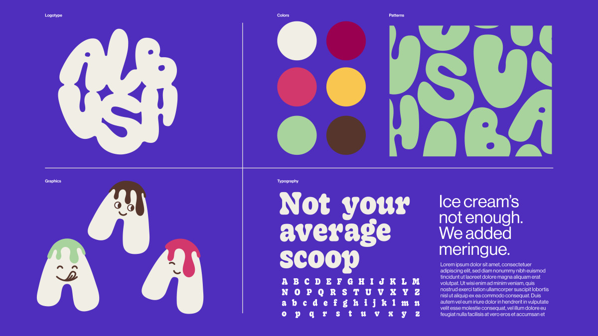 The visual identity reflects Albush’s dual nature — clean design with a sense of whimsy. The logo combines round, generous shapes with airy spacing, evoking both creaminess and lightness. The typography mirrors the rhythm of whipped meringue — soft curves, subtle contrasts, and a floating balance between delicacy and confidence. The color palette is bright and edible, inspired by the natural tones of ice cream and the joy of summer. On the packaging, bold white spaces and playful elements keep the design fresh and instantly recognizable, allowing the product to stand out without shouting.