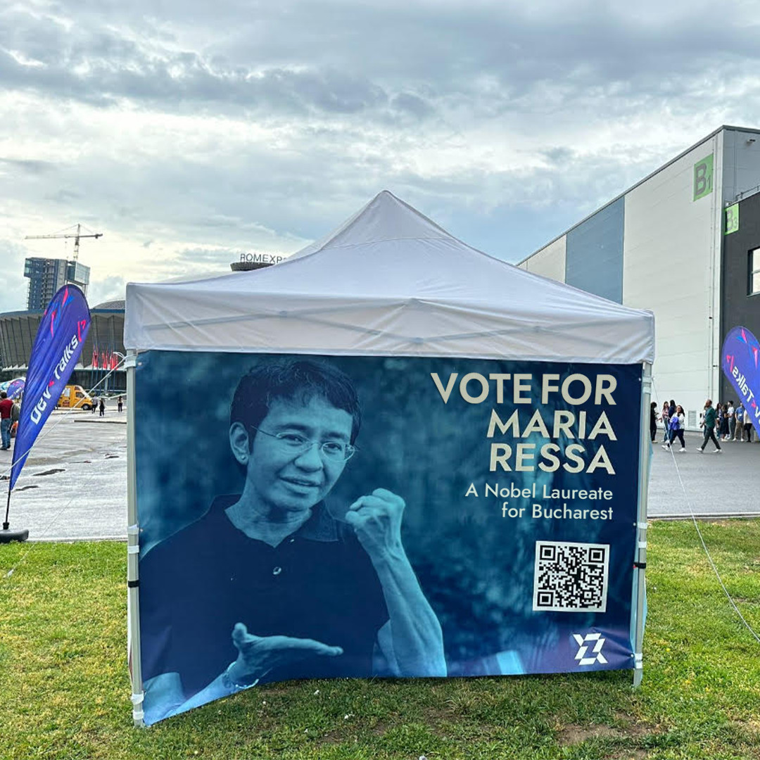And at the country’s largest book festival, we staged a mock political campaign — complete with a tent, posters, and volunteers inviting people to “Vote for Maria Ressa.”